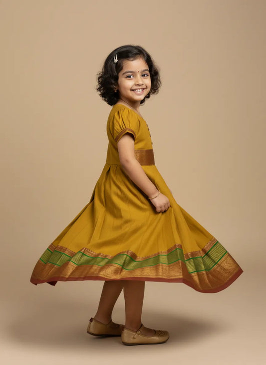 Kids Mustard Chettinad Cotton Gown PG658