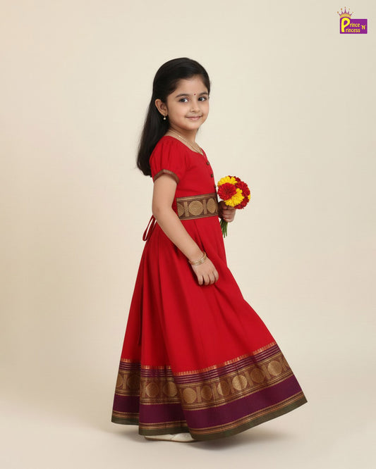 Kids Red Chettinad Cotton Gown PG662